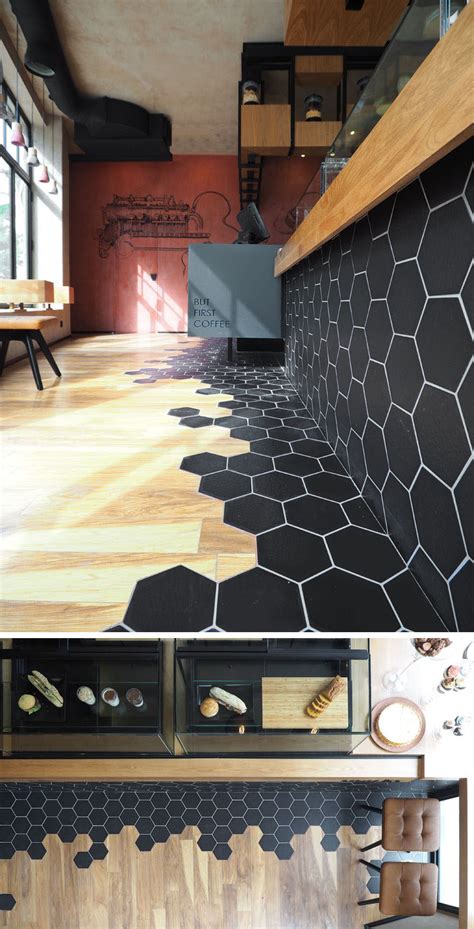Hexagon Tiles Transition Into Wood Flooring Inside This Cafe In Greece | CONTEMPORIST